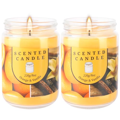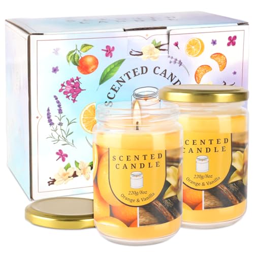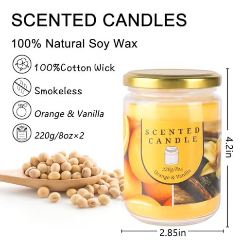 2 Pack 16oz Orange Vanilla Aromatherapy Candle with 80 Hours Long-Lasting Burn time Odor Elimination Scented Candles Gift Set for Women, Natural Soy Wax