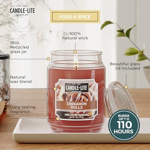 Candle-lite is America’s #1 candle. Bring that warm cinnamon scent into your home with this Cinnamon Rolls scented candle. This mouth-watering scent offers a delectable aroma of warm cinnamon with rich pecan accents.Measuring 5.8″Hx 3.89″D, this Candle-lite candle is the perfect size to place in any room. Enjoy a calming glow no matter where you are with this 18 oz. large candle.This single wick candle has a 100% cotton wick, is lead free, and burns up to 110 hours. The brown colored paraffin wax candle maintains a consistent burn. Always remember to candle with care and burn within sight. Keep candles away from children, pets, and things that can catch fire. Stop use when .5” of unmelted wax remains and extinguish every 4 hours for cooling. Trim the candle wick to .25” prior to each use. Lighting America’s hearts and homes since 1840, Candle-lite Company has been crafting quality candles in Ohio’s heartland for over 180 years. Create an inviting atmosphere with these candles for home scented with varied fragrances suitable for all the different rooms.