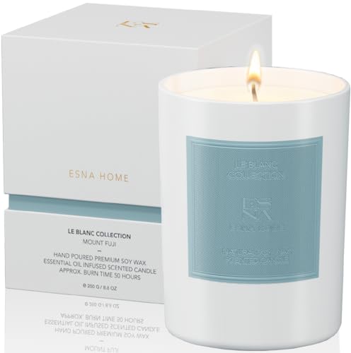 ESNA HOME Leblanc Mount Fuji Luxury Aromatherapy Scented Candles | Essential Oil All Natural Soy Candles Meditation Gifts for Women | 8.8oz 50 Hours Votive White Candle | Decor for Home Scented