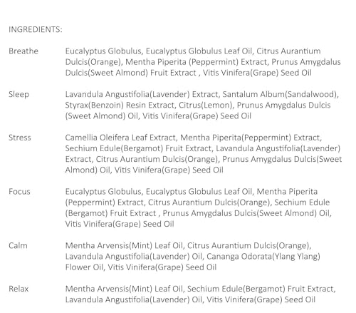 1. SIX NATURAL ROLL-ON BLENDS – Our essential oils set includes 6 packs of 0.33fl.oz/10ml amber roller bottles, each containing a unique blend for Breathe, Sleep, Stress, Focus On, Calming and Relaxation.
