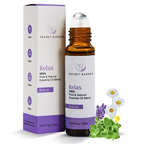 Relax Essential Oil Roll On (10ml) – Lavender Essential Oil Blends for Aromatherapy, Massage, Skincare, Relax – Aromatherapy Oils Roller Bottles – Premium Roll On Essential Oils by Secret Garden