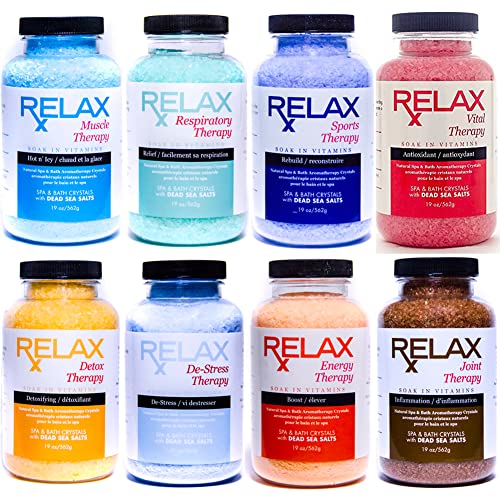 Relax Spa & Bath – Therapeutic Epsom Salt Collection, 8-Pack of 19oz – Natural Soak with Vitamins & Essential Oils for Pain and Stress Relief