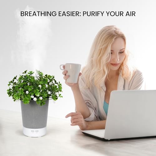 3-in-1 Functionality : This essential oil diffuser serves as a humidifier, aromatherapy device, and night light all in one. With delicate artificial plants, it brings the fresh ambiance of greenery into your space while enhancing its visual appeal. Perfect for any room, home, office, or as a thoughtful gift for your loved ones
