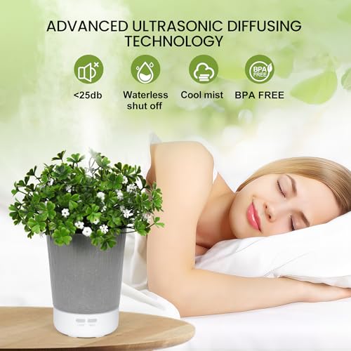 Essential Oil Diffusers, Aromatherapy Diffuser, Potted Plant Four Leaf Clover Oil Diffuser, Ultrasonic Cold Mist humidifier for Home, Office, Bedroom, Super Quiet with Waterless Auto Shut-Off