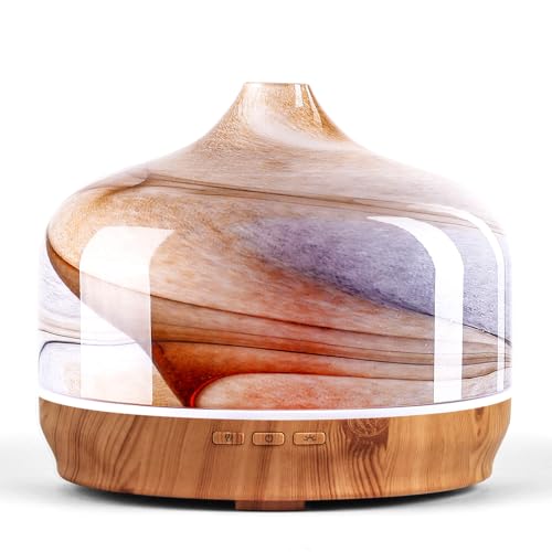 UNIQUE ART DECORATIVE DESIGN – Our 500ml glass essential oil diffuser has an elegant starry pattern glass cover and wood grain decorative base.It is very suitable for your bedroom, living room, children’s room, study room, office and yoga room.