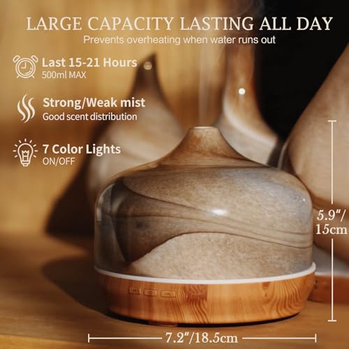 CREATIVE AND PRACTICAL GIFT IDEA – Our 500ml large capacity diffuser is a wonderful gift choice for birthday, anniversary, mother’s Day, Valentine’s Day, wedding, graduation, Thanksgiving, Christmas to families, friends, teachers, lover, and colleague.