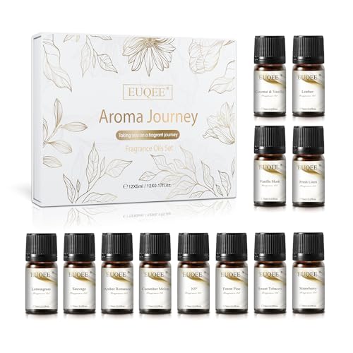 EUQEE 12PCS Fragrance Oils Gift Set, Premium Aroma Journey Aromatherapy Oils for Women, Diffuser, Soap Candle Making – 5ml/0.17fl. oz