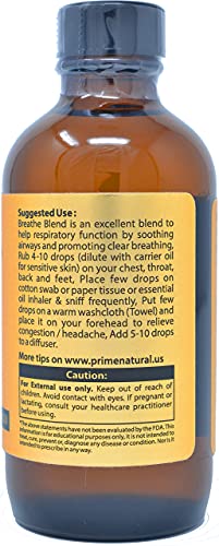 Prime Natural Breathe Essential Oil Blend 4oz – Pure, Undiluted Therapeutic Grade for Aromatherapy, Scents & Diffuser – Sinus Relief, Allergy, Congestion, Cold, Cough, Headache