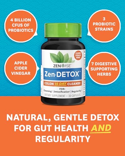 Zenwise Health 15 Day Colon Cleanse, Detox Constipation Relief, and 15 Day Cleanse for Men & Women – Psyllium Husk, Senna Leaf, Bromelain, Ginger, ACV, and Probiotics for Gut Health – 30 Count