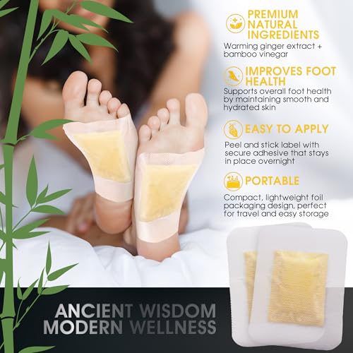 PREMIUM INGREDIENTS: Blended with high-quality ginger powder and bamboo vinegar, our natural foot patches provide a gentle yet effective solution for relieving tired feet and promoting overall well-being.
