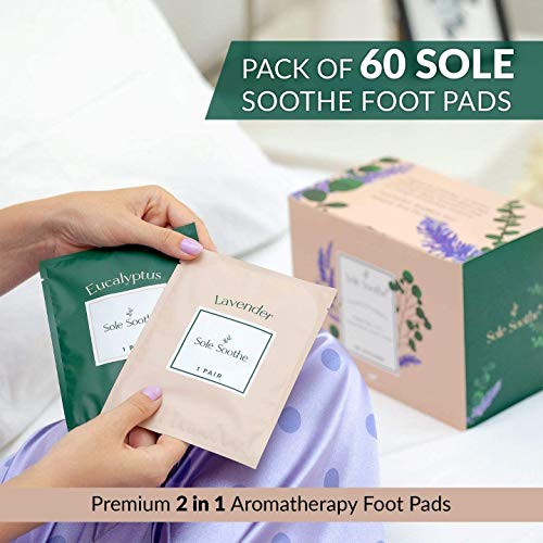 🎁 60 OVERNIGHT FOOT PADS IN 1 BEAUTIFUL BOX – Pamper your feet with 60 individually-wrapped feet pads (30 Lavender, 30 Eucalyptus). Every Sole Soothe slim patch is so compact, thin, soft, and comfortable. It smells wonderful, unlike many other food pads, and to preserve quality we went a step FURTHER and wrapped them in foil packaging. Wear the adhesive Sole Soothe foot pads for 5-9 hours every night, 4-5 times per week. Could take 3-4 nights until you’ll notice improvements. So soothing!