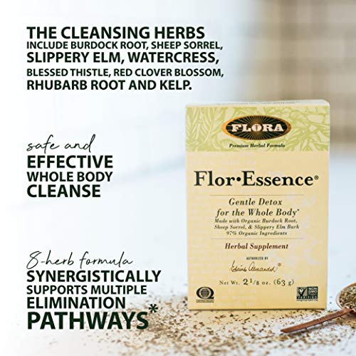 Flora Flor Essence features certified-organic burdock root, sheep sorrel, slippery elm, watercress, Turkish rhubarb root, kelp, and red clover. This superior traditional formula of eight herbs that work synergistically to cleanse, stimulate, and strengthen the whole body.