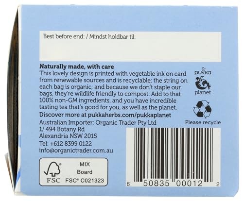 Prepare to reawaken with a cup of organic delight. Gentle yet purposeful – leaving your body as sweet as the fennel seed within. Aniseed and lush cardamom bring your cup alive to shrug off the old and embrace the new. Savour after meals to add a touch of transformation to your day. Every Pukka plastic-free tea bag comes in its own recyclable envelope to retain the essential oils in our organic herbs. Each bag has two chambers, allowing these incredible herbs to flow and release the full potency in your cup. To help the flavours to fully disperse, pour boiling water directly on the bag. Every herb loves the water, so leave them to steep for the perfect brew. Infuse for up to 15 minutes. Boiling just the water you need helps make every cup of Pukka tea as sustainable as it can be. Good news for giving your mind, body and soul a fresh start. At Pukka, our heartfelt desire is to create a healthier, happier world through the incredible power of organic herbs. We hope you feel inspired to discover more about yourself and the beautiful planet on which we all live. Doing good things helps make good things happen. We create things that help you, help nature and everything in-between. It’s called conservation through commerce – striving to positively change the world for you, business and the planet. We are a B Corp organisation, Giving back 1% for the Planet, Fair for Life and FairWild certified. If you enjoy Detox, why not discover, Mint Matcha Green, Mint Refresh, Peppermint and Licorice, Three Fennel, Three Mint