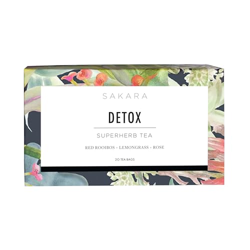 Sakara Detox Tea, 20 Bags – Herbal Tea with Rose Petals, Lemon Peel, Lemongrass, Orange Peel, & Rooibos, Organic Tea Bags for Digestive Health, Caffeine Free Tea, Digestive Tea