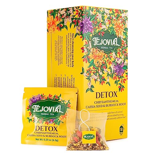 Tejovial Chrysanthemum Cassia Seed Tea Bags – Natural Liver Cleanse Detox & Repair Tea with Burdock Root, Osmanthus, Goji Berries, Honeysuckle –18 Herbal Tea Bags, 4.13 Oz Sugar Free Liver Detox Tea