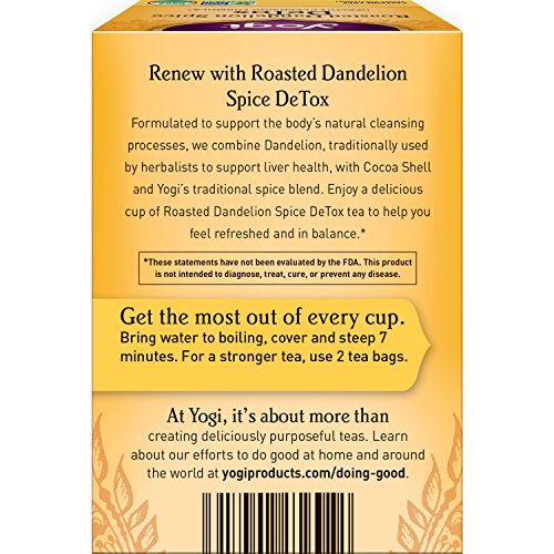 Organic DeTox Tea: Yogi Roasted Dandelion Spice DeTox tea combines Roasted Dandelion and Dandelion Root, herbs traditionally used to support the body’s natural cleansing processes