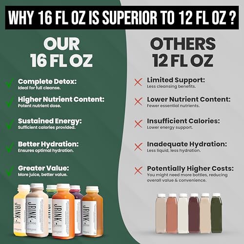 The Ideal Cleanse Size: Why 16 fl oz is Superior to 12 fl oz? We offer 16 fl oz bottles, providing the ideal portion for a complete cleanse, unlike the 12 fl oz options, which may not be sufficient for a thorough detox. These Raw Natural juices can help keep your mind. Experience increased energy levels, control cravings and significantly improve overall sleep quality.