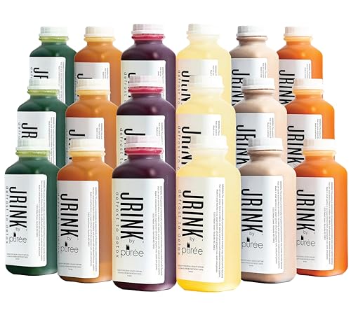 JRINK by Purée Intermediate 3 Day Juice Cleanse, Freshly Juiced-on-Demand, Cold Pressed Juices of 100% Organic Fruits/Vegetables, No Preservatives, 18 bottles packed in the safest HDPE plastic, 16oz