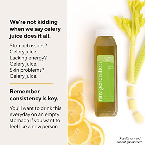 Raw Generation Morning Celery Juice Daily Health Drink (18-Count)- Raw Cold-Pressed Celery Juice with a Drop of Lemon/Great for Gut Health & Boosting Energy/Best to Use Once Daily on Empty Stomach