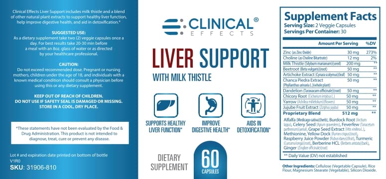 Clinical Effects: Liver Support – Natural Milk Thistle and Zinc Supplement – 60 Veggie Capsules – Helps Detox and Cleanse The Liver – Supports Liver Function and Digestive Health – Made in The USA