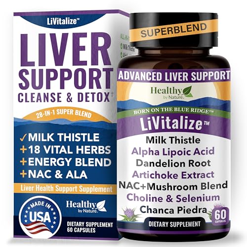 LiVitalize 28-in-1 Liver Health Support with Milk Thistle – Liver Cleanse & Detox Supplement – Dandelion NAC Alpha Lipoic Acid Artichoke Reishi Chaga Turkey Tail Mushroom Formula 1540mg, 60 Capsules