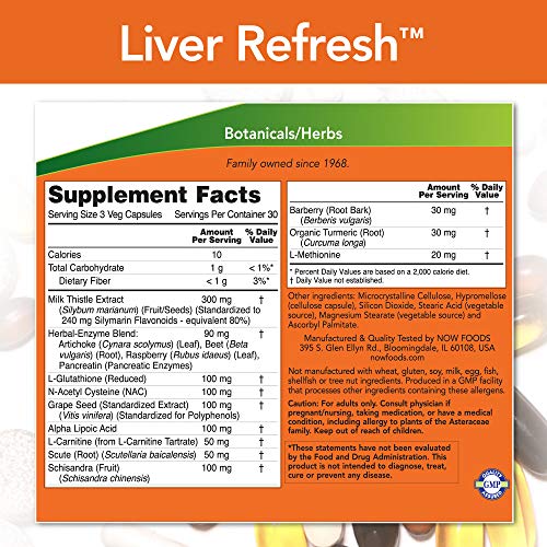PROMOTES OPTIMAL LIVER HEALTH*: NOW Liver Refresh combines milk thistle extract with a unique herb-enzyme blend to create a balanced botanical formula for the support of healthy liver function.* Take 3 capsules daily with food.