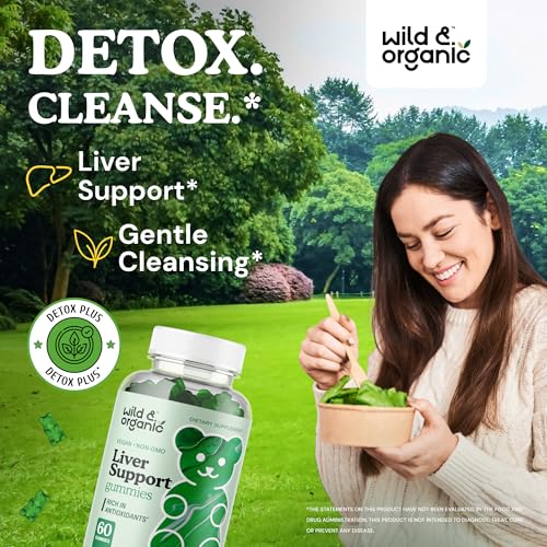 Wild & Organic Liver Support Gummies – Liver Cleanse Detox w/Milk Thistle, Dandelion Root Extract – Non-GMO Milk Thistle Supplement for Liver Health – 60 Milk Thistle Liver Detox Gummies
