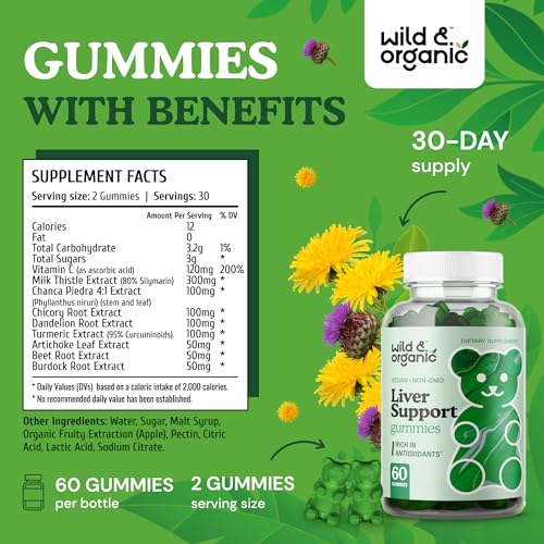 A 30-Day Supply: Each bottle contains 60 Wild & Organic liver gummies for liver health, providing a 30-day supply when taking two gummies per day.