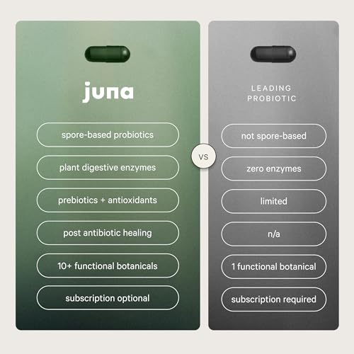 2-in-1 Probiotic + Digestive Enzymes. Juna’s Dual Action formula is a probiotic, prebiotic + digestive enzyme supplement. Debloat & Support Digestive Health: Formulated with a probiotic blend (L.acidophillus, B lactis/Longum, L Plantatrum) and new generation spore based probiotics that are clinically supported to tackle bloating, support healthy digestion, and provide relief from digestive discomforts like gas, nausea, diarrhea and diversify the gut microbiome.