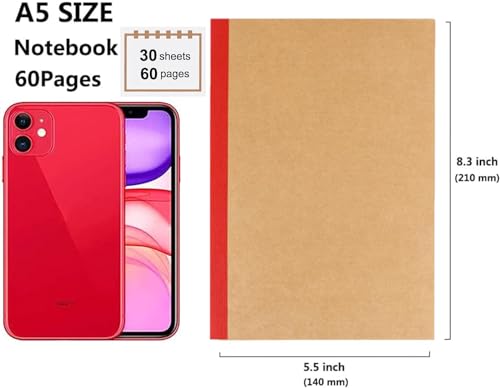 【Value for Money】-Composition Kraft Notebooks contain 12 kraft cover notebooks with bright rainbow of 12 different colors.Each measures 8.3″ x 5.5″, A5 size with 60 lined pages(30 sheets). The handy size is smaller than a standard composition notebook, making you carry and hold easily.