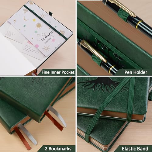 ZXHQ A5 360 Pages Lined Journaling Notebooks with Pen, Journals for Women Men Writing Notebook, Tree of Life Design, Fine Inner Pocket 5.9” x 8.5” – Dark Green