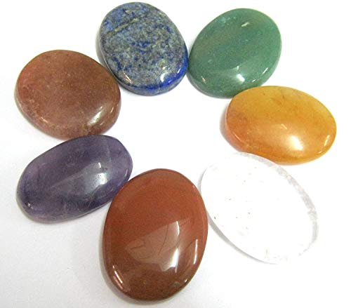 crystalmiracle Beautiful Seven Chakra Worry Stone Wellness Crystal Healing Gemstone for Positive Energy Powerful Thumb Stones Meditation Reiki Feng Shui Gift for Men Women