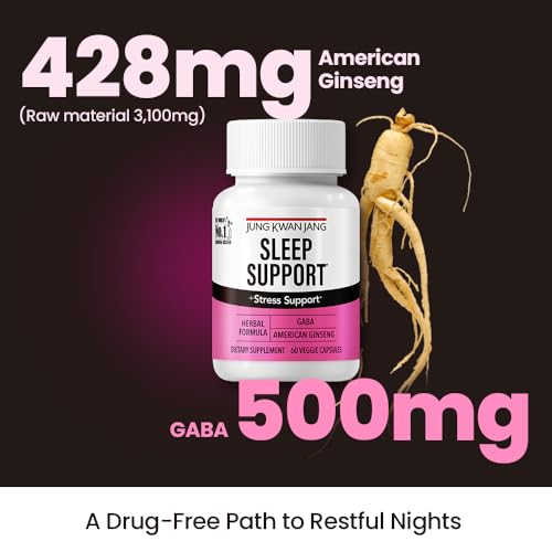 JungKwanJang Sleep Support GABA Complex 500mg with American Ginseng – Sleep Aid Supplement for Meditation Support, Better Sleep, and Increased Energy, 60 Capsules for Men and Women