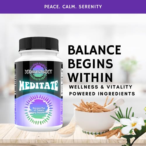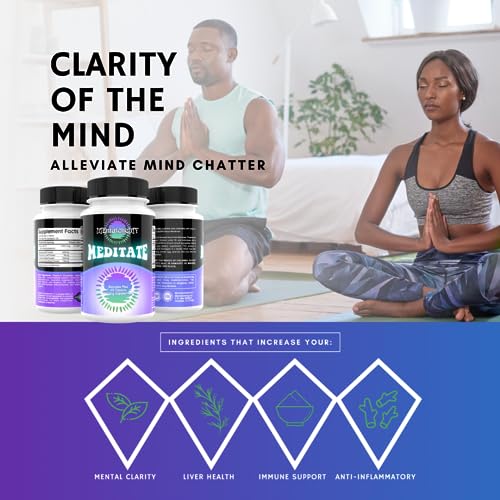 Meditate Mental Focused Adaptogenic Herbs Meditation Supplement Nootropic Brain Supplement Booster for Mental Sharpness, Focus, Memory, Cognitive Wellness and Alleviating Mental Chatter