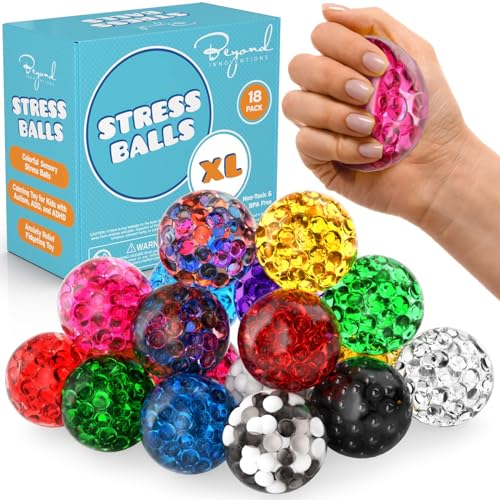 Stress Balls Set – 18 Pack – Party Favors | Stress Balls for Adults – Squishy Balls, Goody Bag Stuffers | Anxiety Relief Calming Tool – Fidget Stress Ball for Autism & ADD/ADHD
