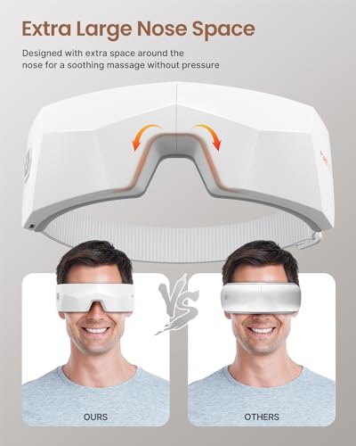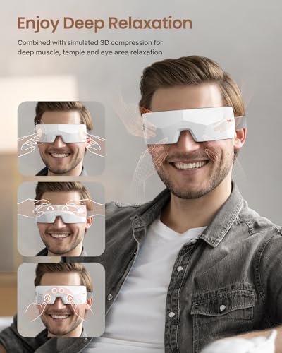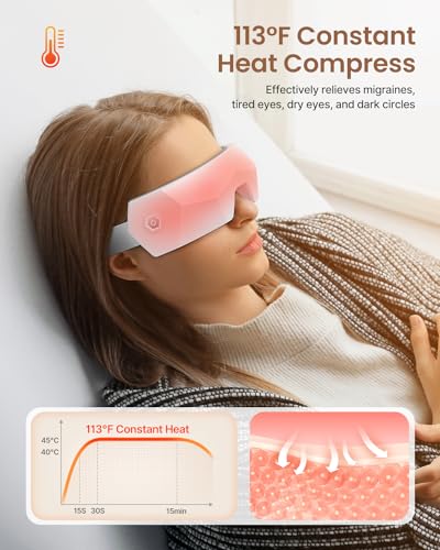 Customizable Comfort: Choose from 5 adjustable massage modes to personalize your comfort along with a heating mode that warms a heating pad around your eyes and temples to 113℉ (45℃). as comfortable as applying a hot towel,Ideal for reducing eye strain, puffiness, and dark circles while improving sleep.