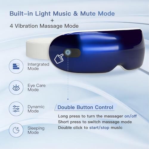 Light Music & No Music – The heated eye massager is equipped with built-in stereo light music, allowing you to immerse yourself in the deep relaxation of music. THE MUSIC CAN BE STOPPED BY DOUBLE CLICKING THE SWITCH BUTTON!