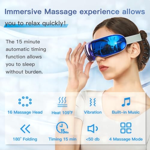 Eye Massager with Heat, Vibrating Eye Mask Massager for Pain Relief, Dry Eyes Relaxation and Sleep Improvement, Tech Destress Gifts for Mom, Dad, Grandpa and Grandmon (Dazzling Blue)