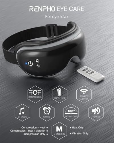 RENPHO Eye Massager FSA HSA Eligible, Eyeris1 Eye Massager with Heat & Remote, Compression, Bluetooth, Eye Care Device for Eye Relax, Reduce Eye Strain, Improve Sleep, Birthday Gifts for Her Him