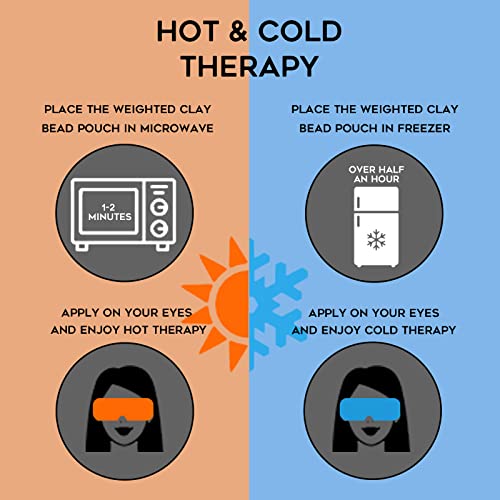 HOT & COLD THERAPY – Hot Therapy (Easily heat in microwave for 2-3 minutes) or Cold Therapy (chill in freezer for over half an hour); Clay beads are good at stay hot or cold and when put on your eyes, it can fit snugly to eye area or your forehead. Hot Therapy is best for soothing and relaxing your eyes and head, while COLD THERAPY is best for relieving headaches or puffy eyes.