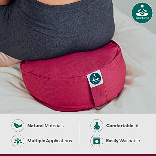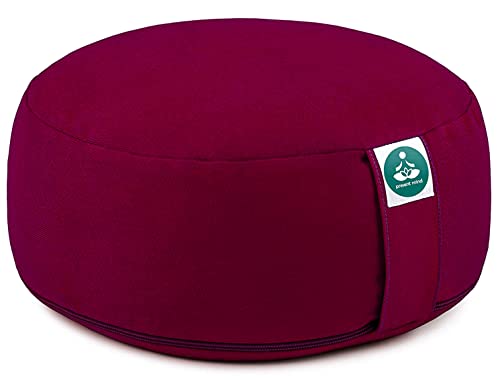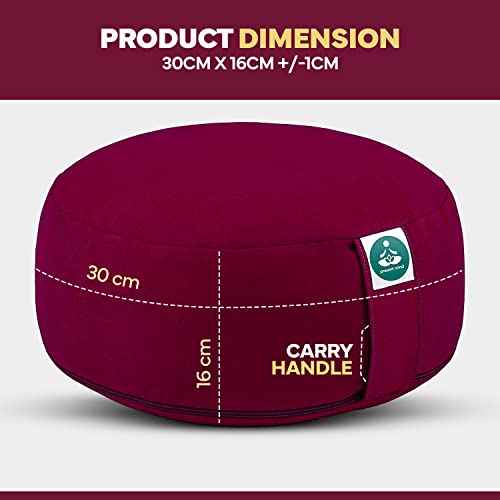 Round Zafu Meditation Cushion (Height 6.5″) – Color: Burgundy – Yoga Cushion / Buckwheat Zafu Pillow – Washable Cover – 100% Natural Floor Cushion – Meditation Gifts