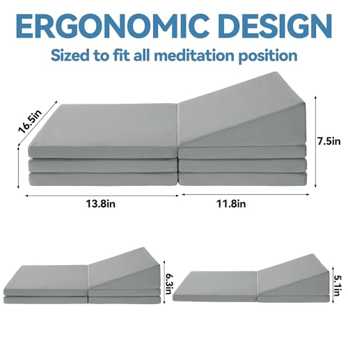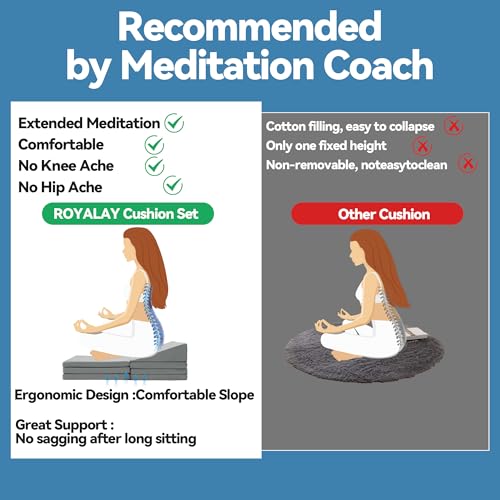 ROYALAY Adjustable Meditation Cushion for Sitting on Floor, Large Yoga Pillow for Adult, 3 Adjustable Heights Meditation Pillow, Ergonomic Meditation Cushion Set for Hip and Knee Support