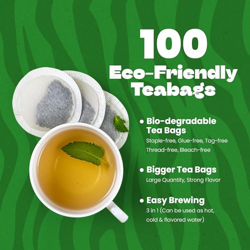 100 BIO-DEGRADABLE TEABAGS: Indulge guilt-free with our bio-degradable teabags, crafted with sustainability in mind. Made from staple-free, adhesive-free, all-natural, and biodegradable materials, each bag ensures minimal environmental impact without compromising on flavor.