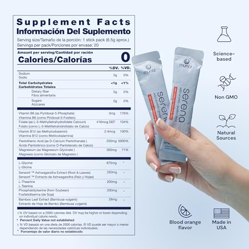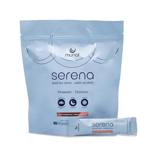 Munar – Serena Stress Relief Supplement with Magnesium – Promotes Relaxation, Enhances Sleep Quality, Elevates Mood, and Boosts Energy – Blood Orange Flavor (20 to-go Stick Packs)
