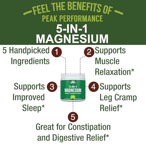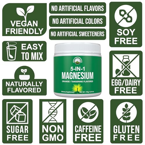 5-in-1 Magnesium Powder Drink for Women & Men. Magnesium Glycinate + Citrate + Malate + Chelate + Taurate. Great Tasting Vegan Magnesium Supplement for Muscle Relaxation, Sleep, Cramps. Orange Flavor