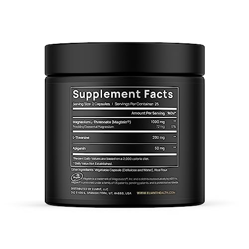 ELMNT Triple Sleep Magnesium Threonate w. Apigenin, Theanine & Magtein Magnesium L-Threonate – Highest Absorption Magnesium Supplement Capsules Natural Sleep Aid for Deep Sleep Calm & Stress Relief