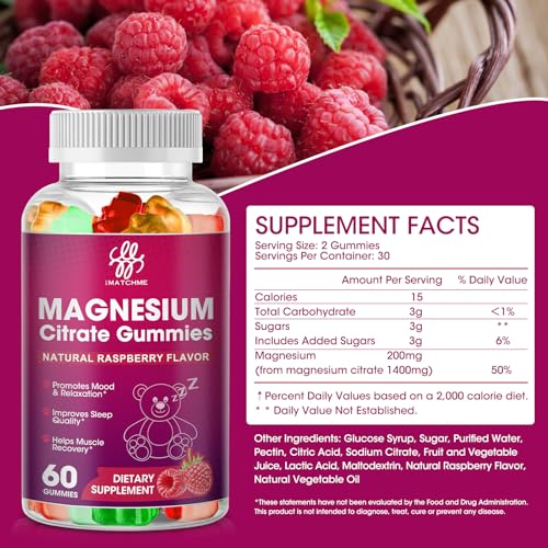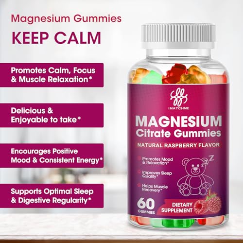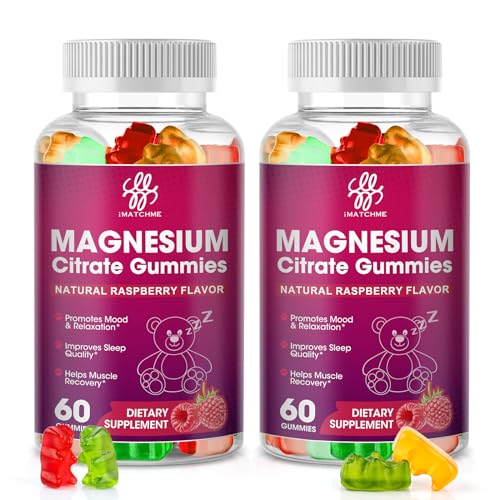Magnesium Citrate Gummies for Adults and Kids – Magnesium Citrate Supplement – Calm, Sleep, Relaxation, Muscle, Bone & Energy Support – High Absorption – Raspberry Chewable Gummy 60 Count (Pack of 2)