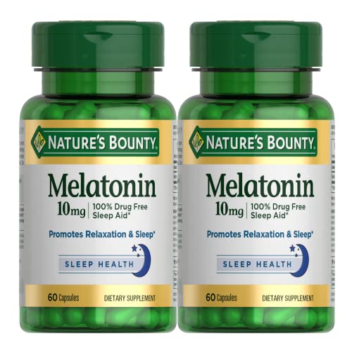Nature’s Bounty Melatonin, 100% Drug Free Sleep Aid, Dietary Supplement, Promotes Relaxation and Sleep Health, 10mg, 60 Count(Pack of 2)