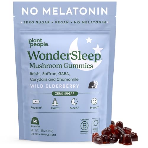 Plant People WonderSleep Mushroom Gummies Supplement for Sleep and Relaxation with Reishi Super Mushrooms, Wild Elderberry Flavor, No Sugar (60 Count)