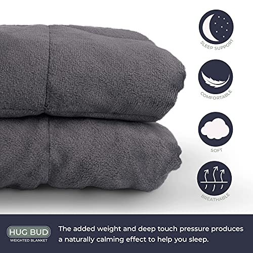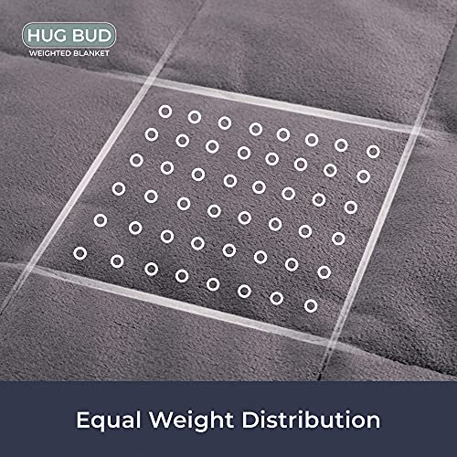 Hug Bud Weighted Blanket – 60″ X 80″ – 15-lbs – No Cover Required – Fits Queen/King Size Bed – for 110-150-lb Adult – Silky Minky Grey – Premium Glass Beads – Calming Stimulation Sensory Relaxation